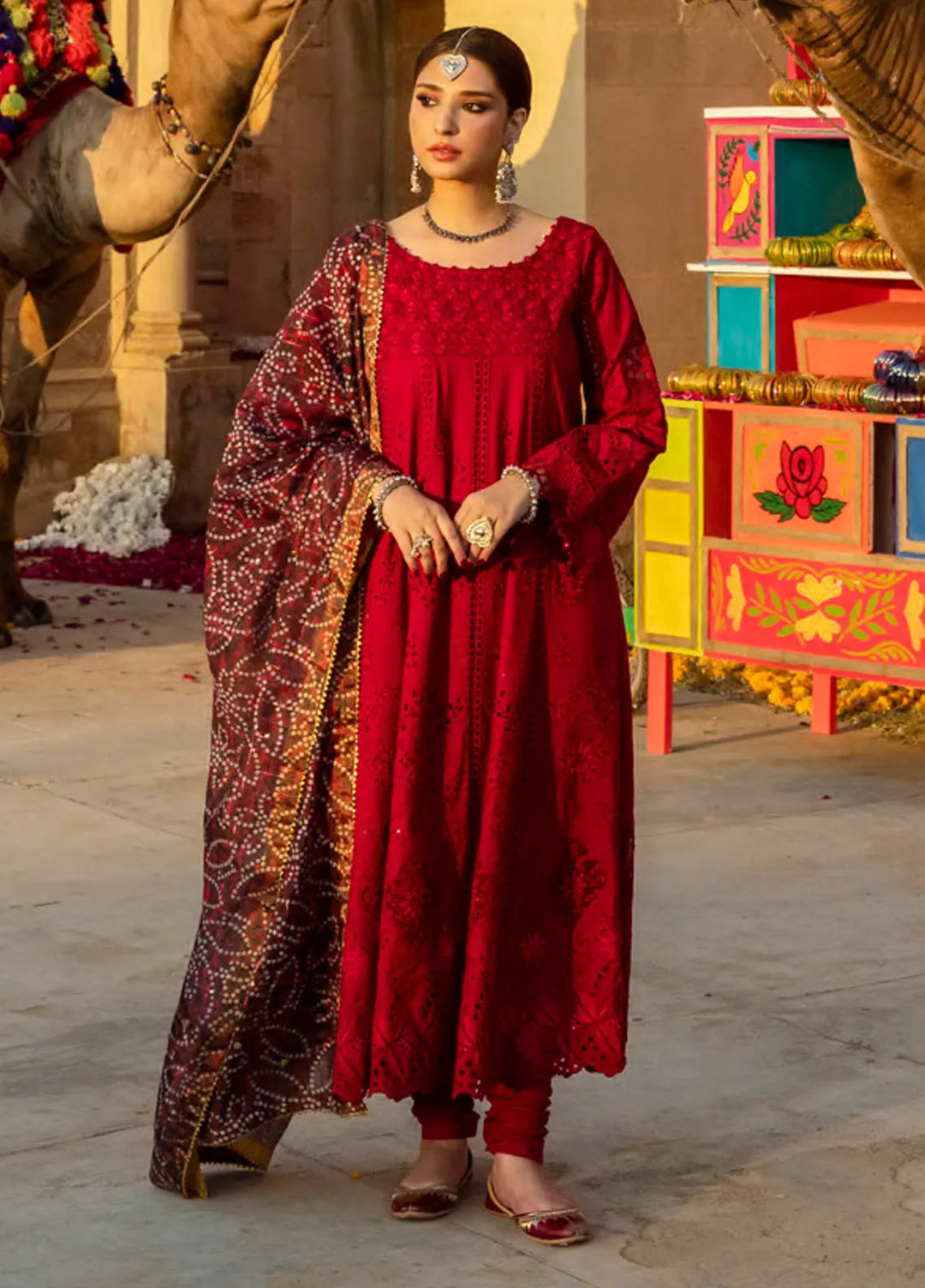 Lavish Premium Embroidered Chiffon Suits Unstitched 3 Piece LVP25UL D-04 Burgundy - Formal Collection