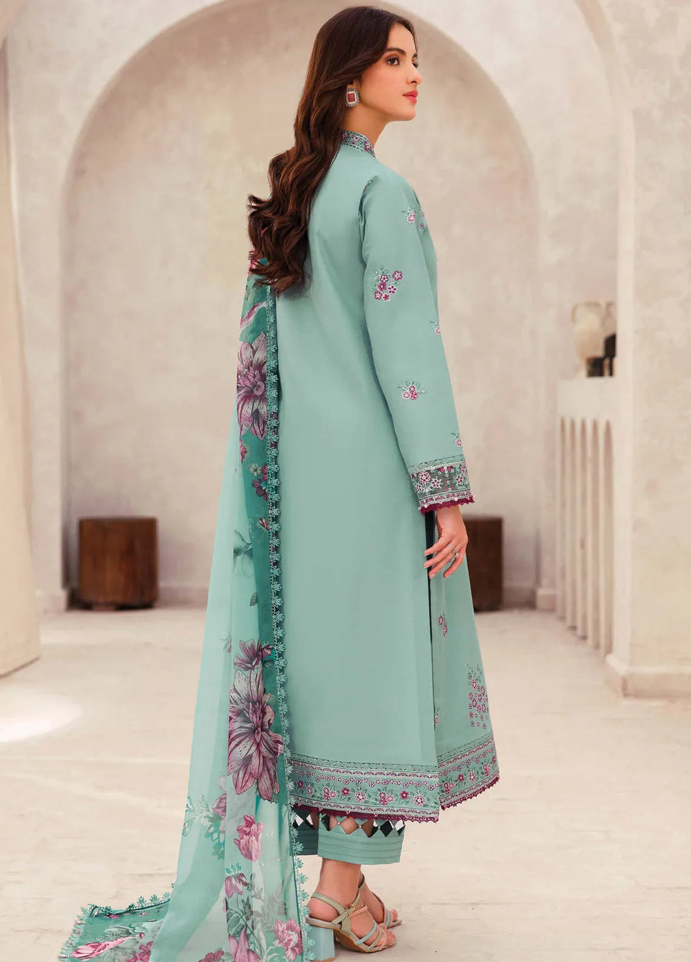 Bahar by Farasha Embroidered Lawn Suits Unstitched 3 Piece FSH25B D-04 Aqua Cascade - Summer Collection