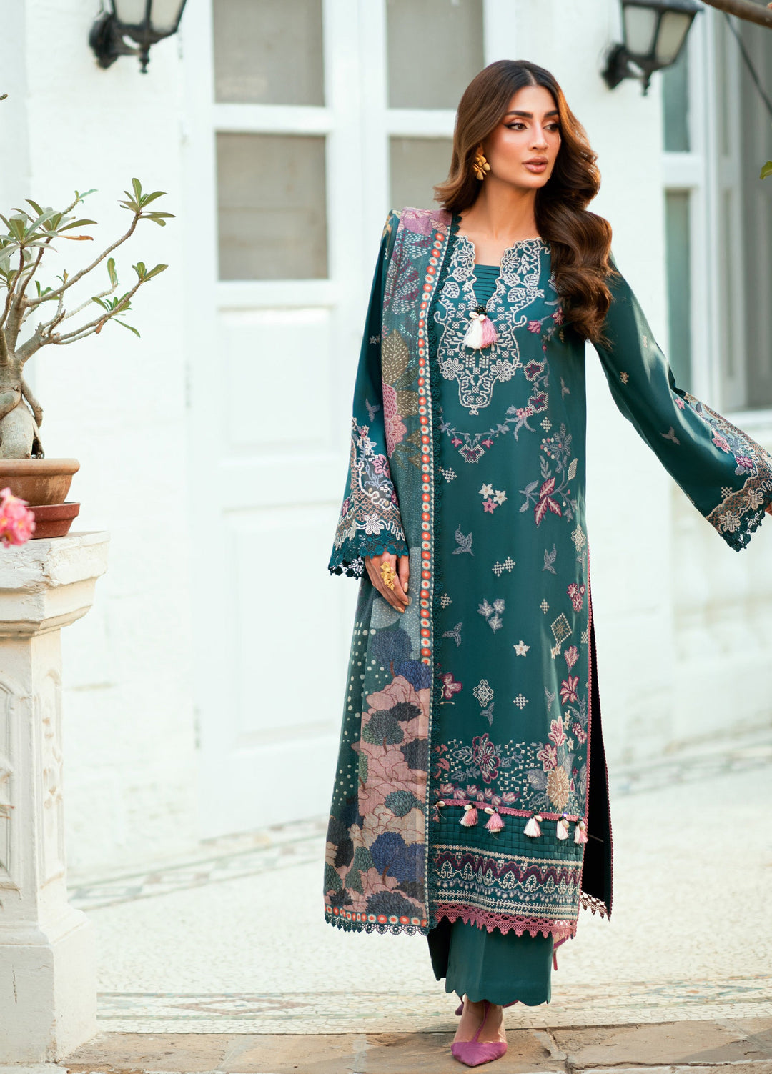 Florent Serenity Embroidered Woolen Shawls Unstitched Marina Twill Suits 3 Piece FL25WS FL-1A - Winter Collection