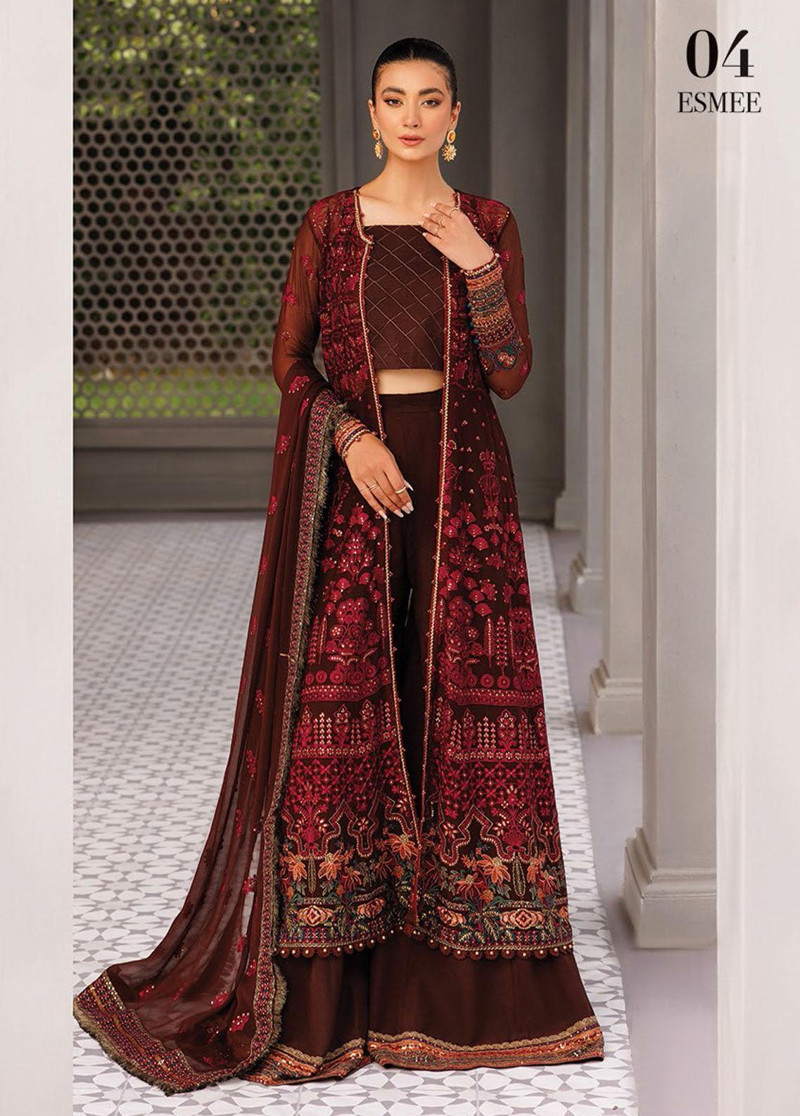Hera By Xenia Formals Embroidered Chiffon Suits Unstitched 3 Piece XE22H 04 Esmee - Luxury Collection