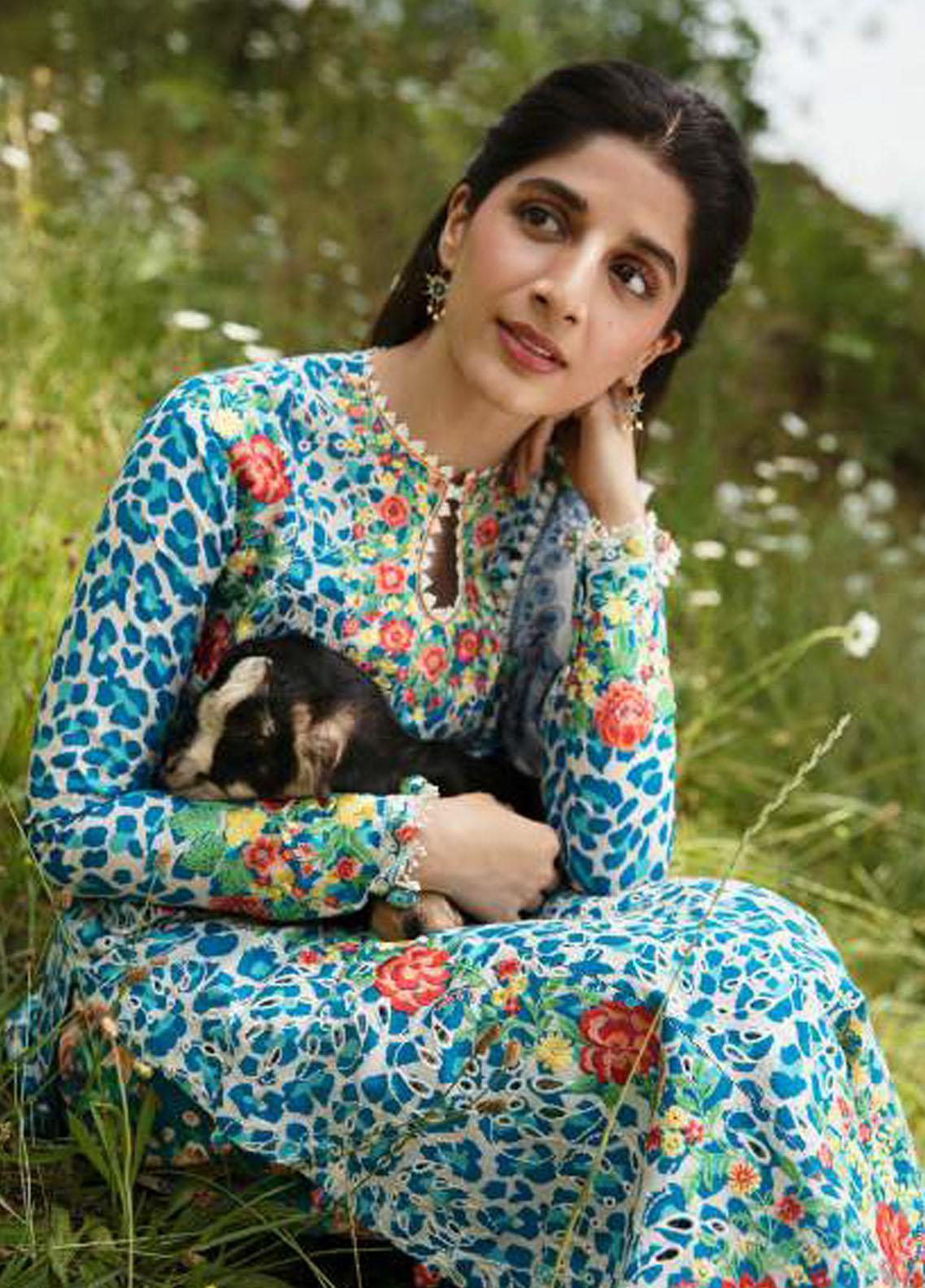 • Digital Printed + Embroidered Front Center Panel (Lawn) Multi (Blue) 1 Pc