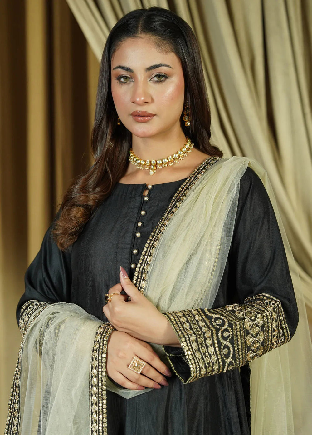 Zaren Pret Embroidered Net 3 Piece Suit 4143-NT-BLK