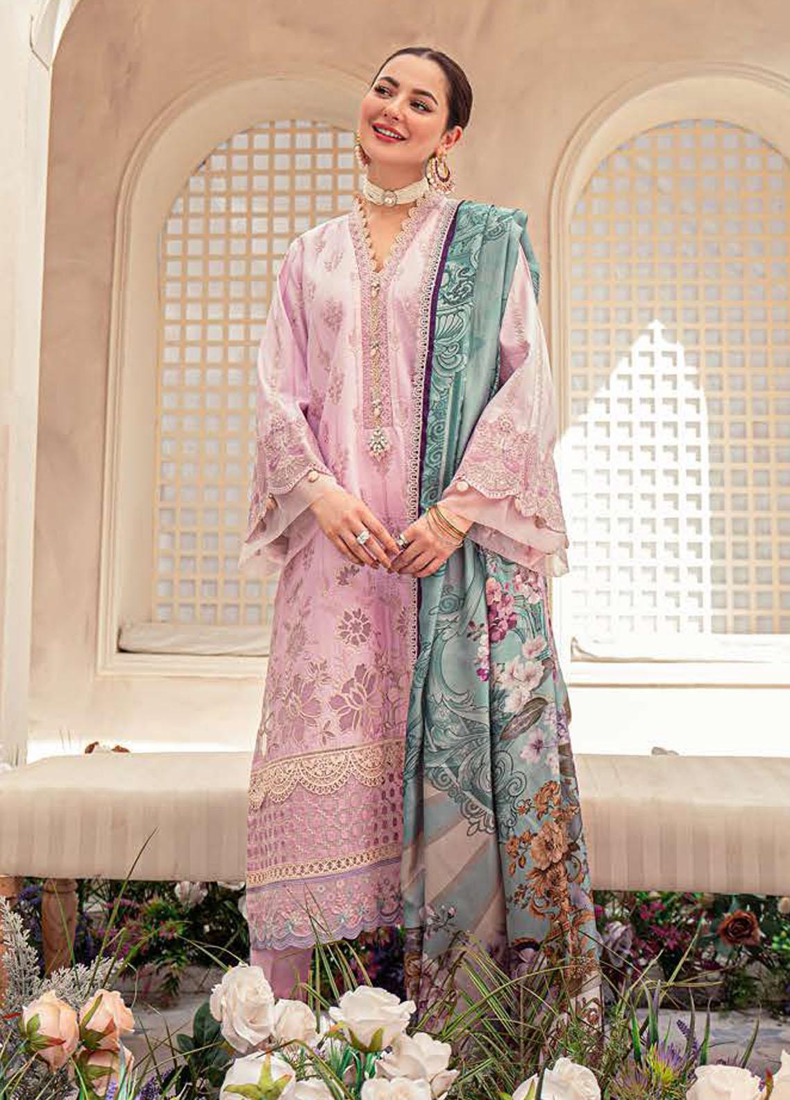 Rendered In A Blissful Shade Of Lavender And Lavishly Laden With Delicate Schiffli And Laser Cut Embroideries, This Ensemble Depicts A Lush Meadow Blooming In Summertime. Alaya Comes Paired With A Chic Digitally Printed Silk Dupatta And A Classic Cambric Trouser To Complete Its Look. This Is A Sublime Design That Will Look Best Styled As A Long Flowing Silhouette For A Timelessly Elegant Eid Look.