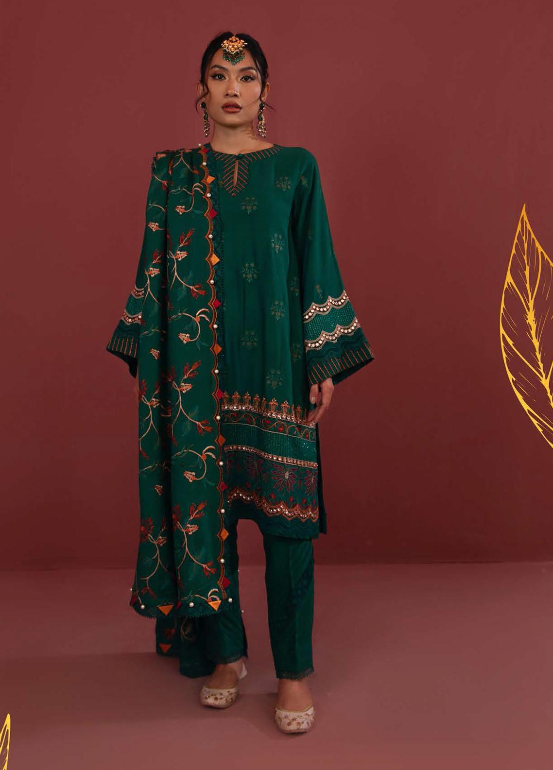 Embroidered Shirt Shalwar Dupatta - Kashmir Green - Karandi Shirt