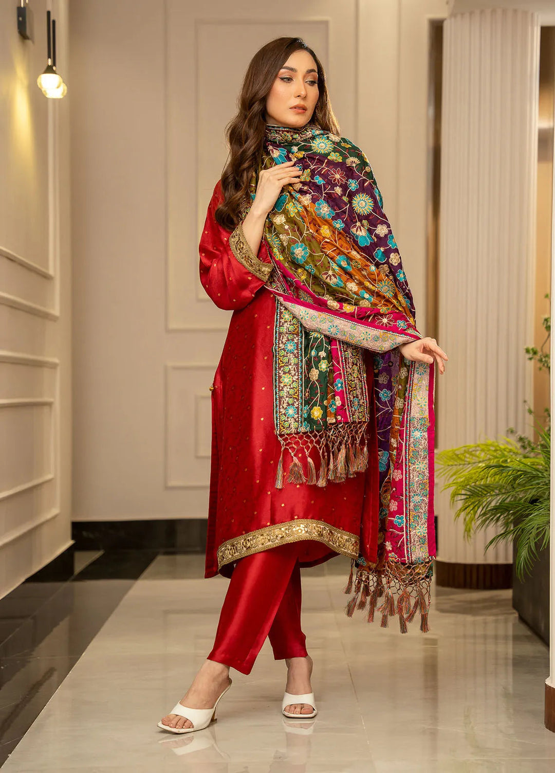Zouj Embroidered Silk Suits Unstitched 3 Piece ZJ24LS ZSS-01 Royal Crimson - Fall Collection