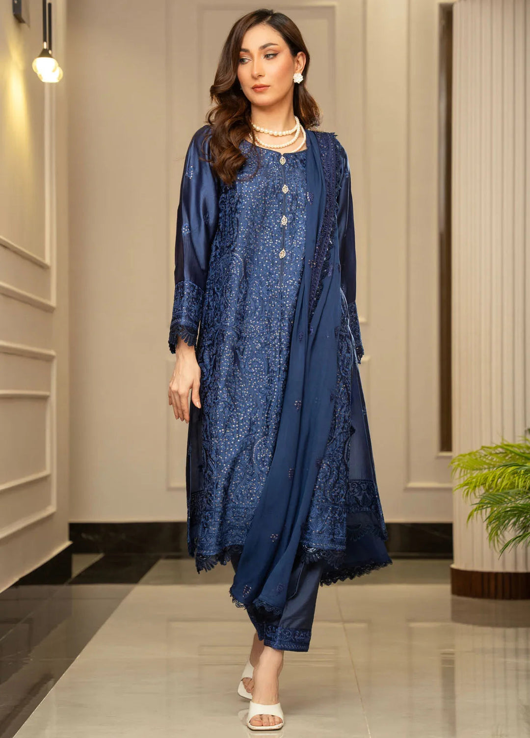 Zouj Embroidered Silk Suits Unstitched 3 Piece ZJ24LS ZSS-05 Starlit Azure - Fall Collection