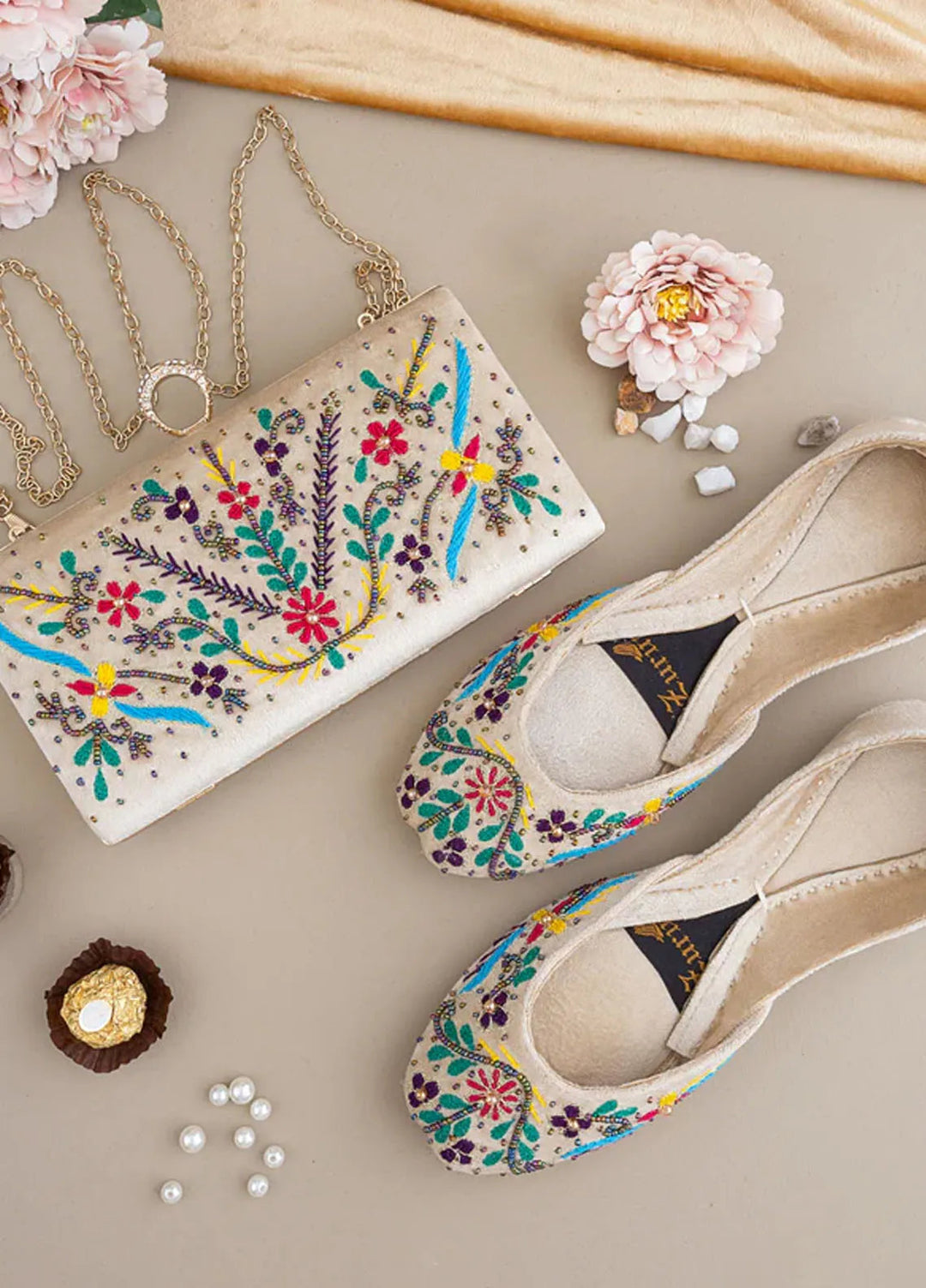 Zuruj Festive Style Clutch X Khussa CL-251-CREAM