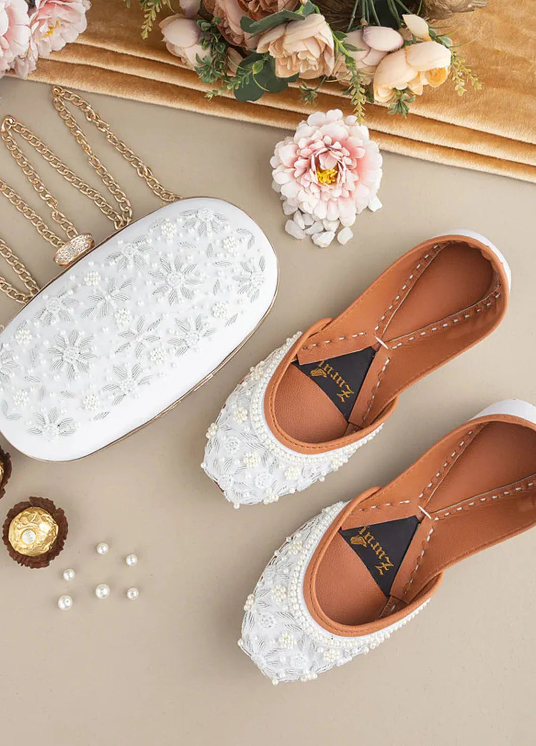 Zuruj Festive Style Clutch X Khussa CL-113-WHITE