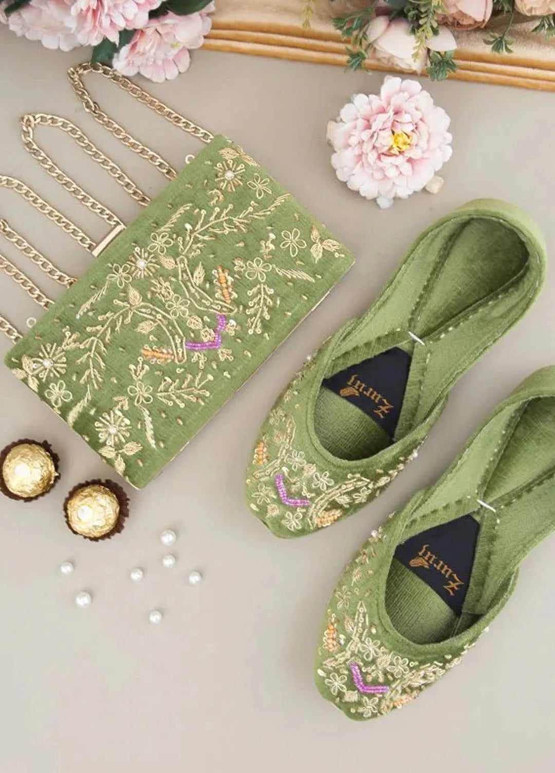 Zuruj Festive Style Clutch X Khussa CL-237-Mehandi
