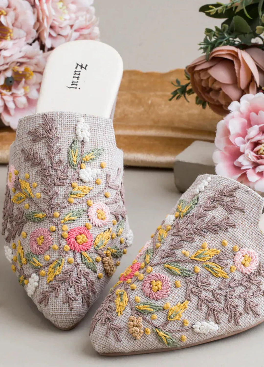 Zuruj Festive Style Heel Mules HM-40-Cream