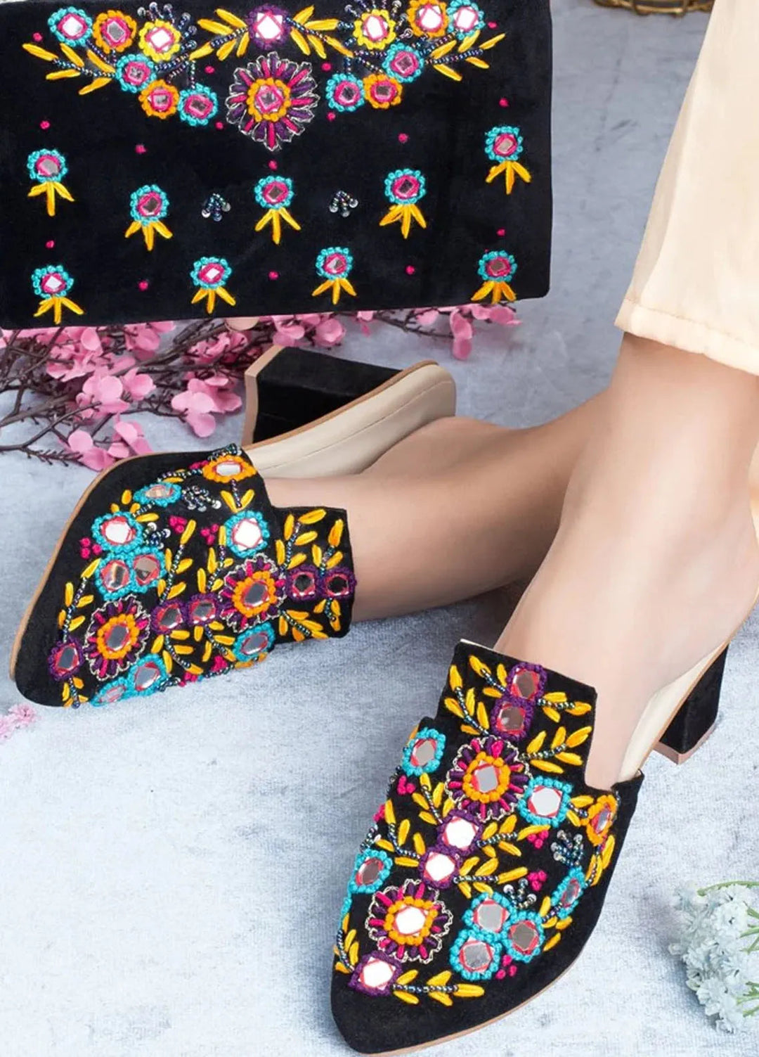 Zuruj Festive Style Mules x Clutch MC-113-BLACK