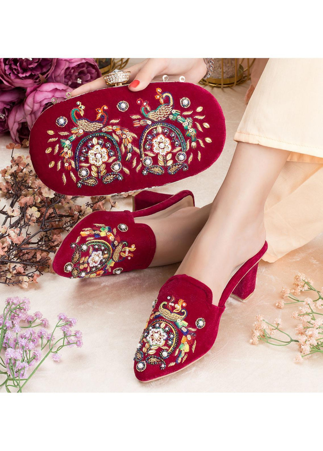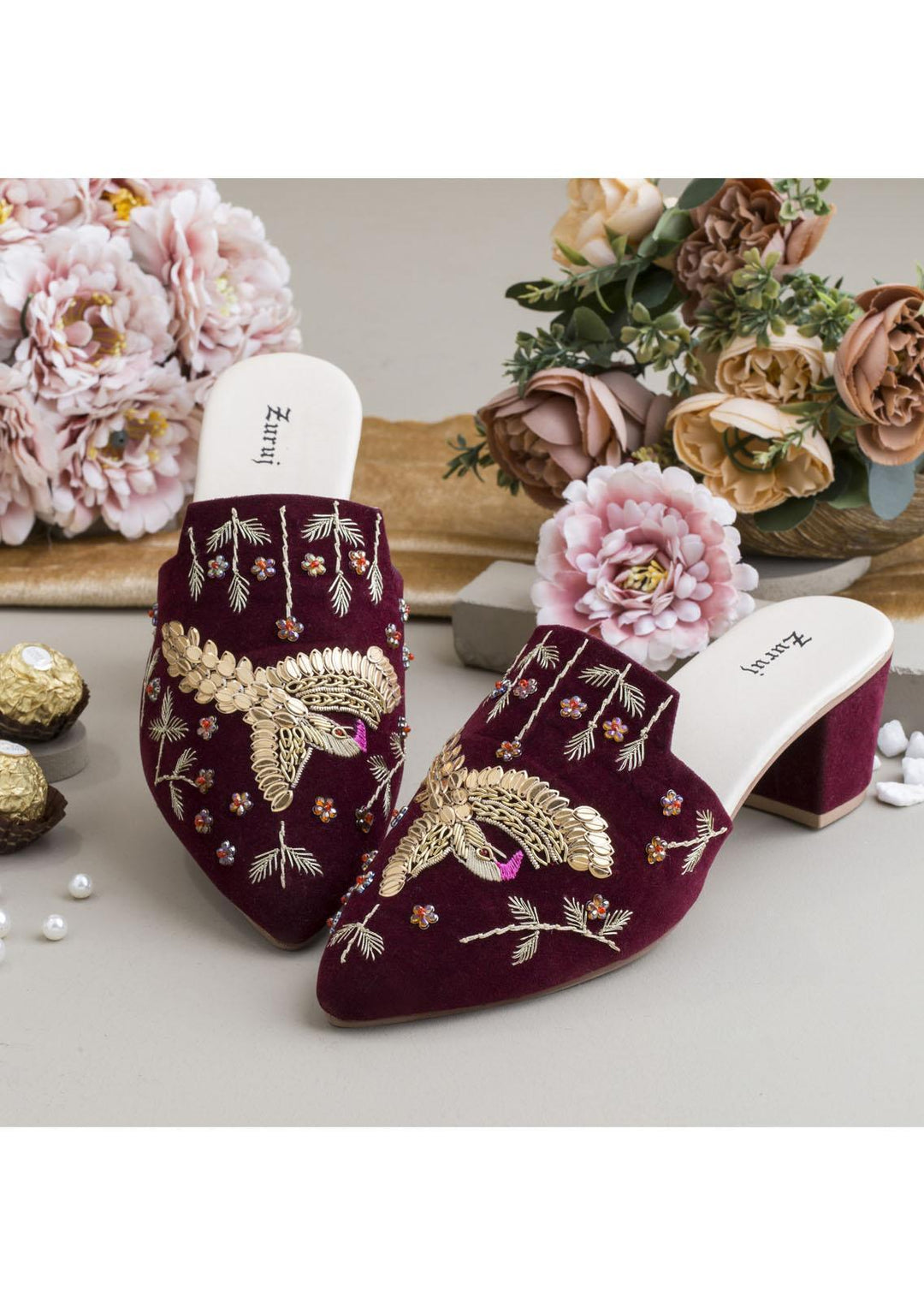 Zuruj Luxury Style Heel Mules ZJ23H HM-94-maroon