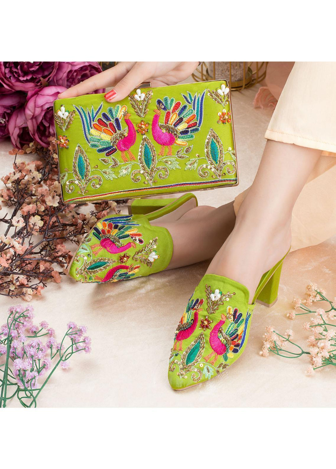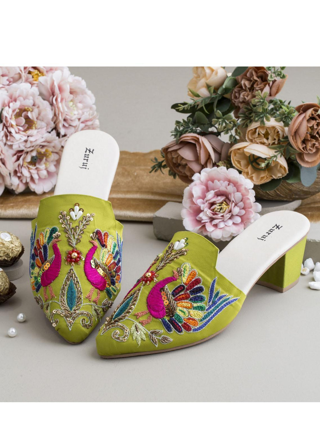 Zuruj Luxury Style Heel Mules ZJ23H HM-44-GREEN