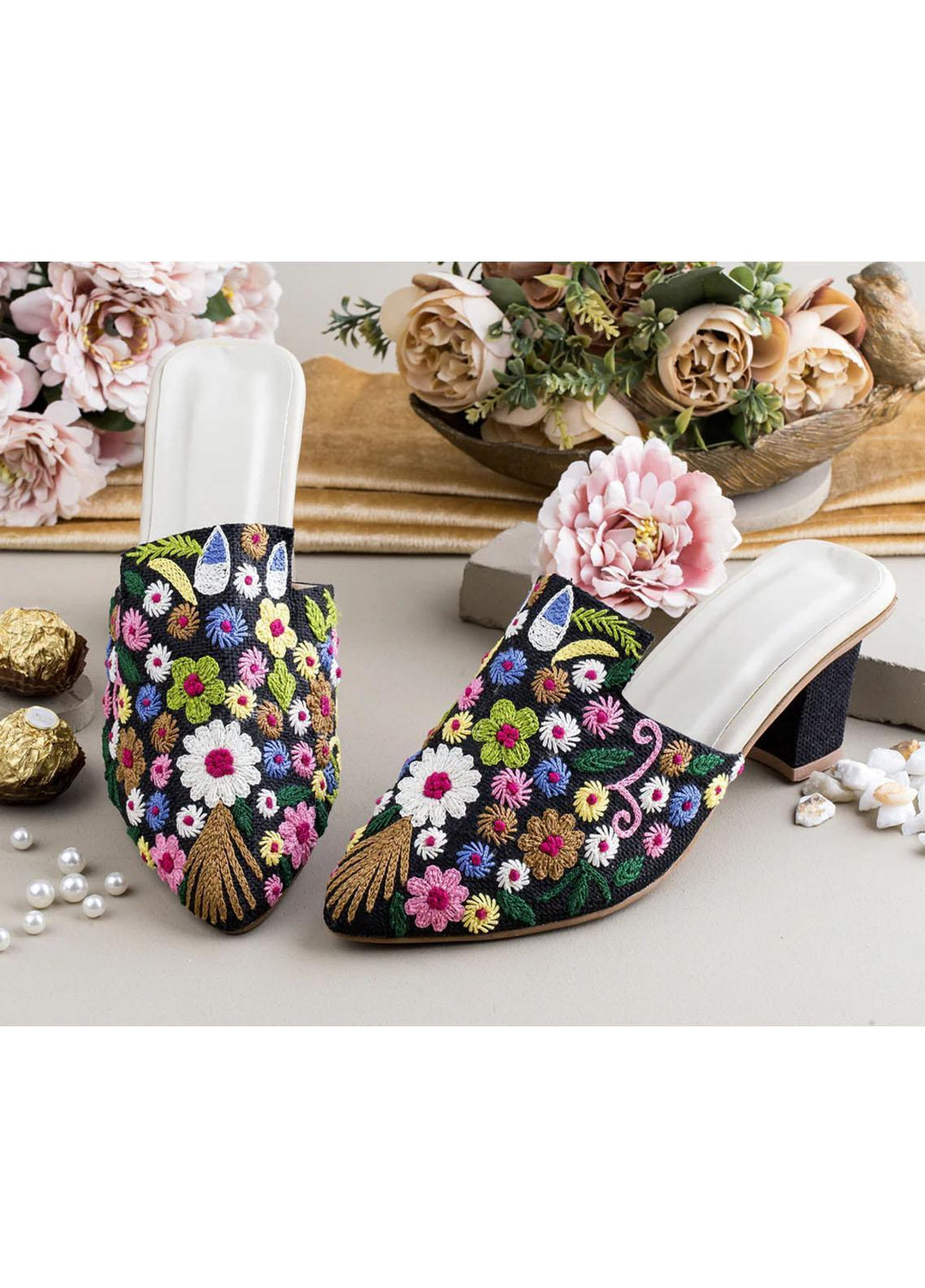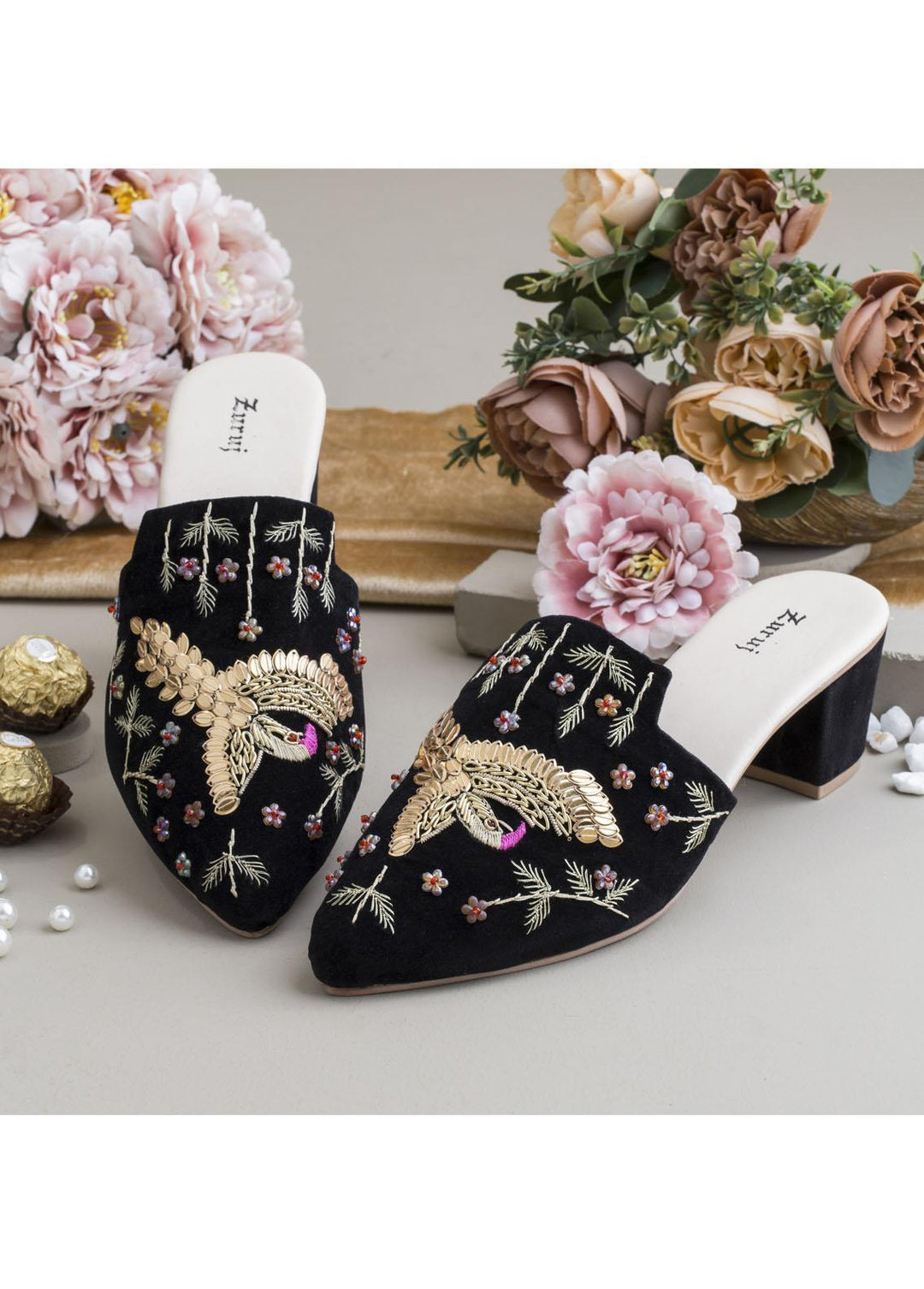Zuruj Luxury Style Heel Mules ZJ23H HM-34-J-BLACK