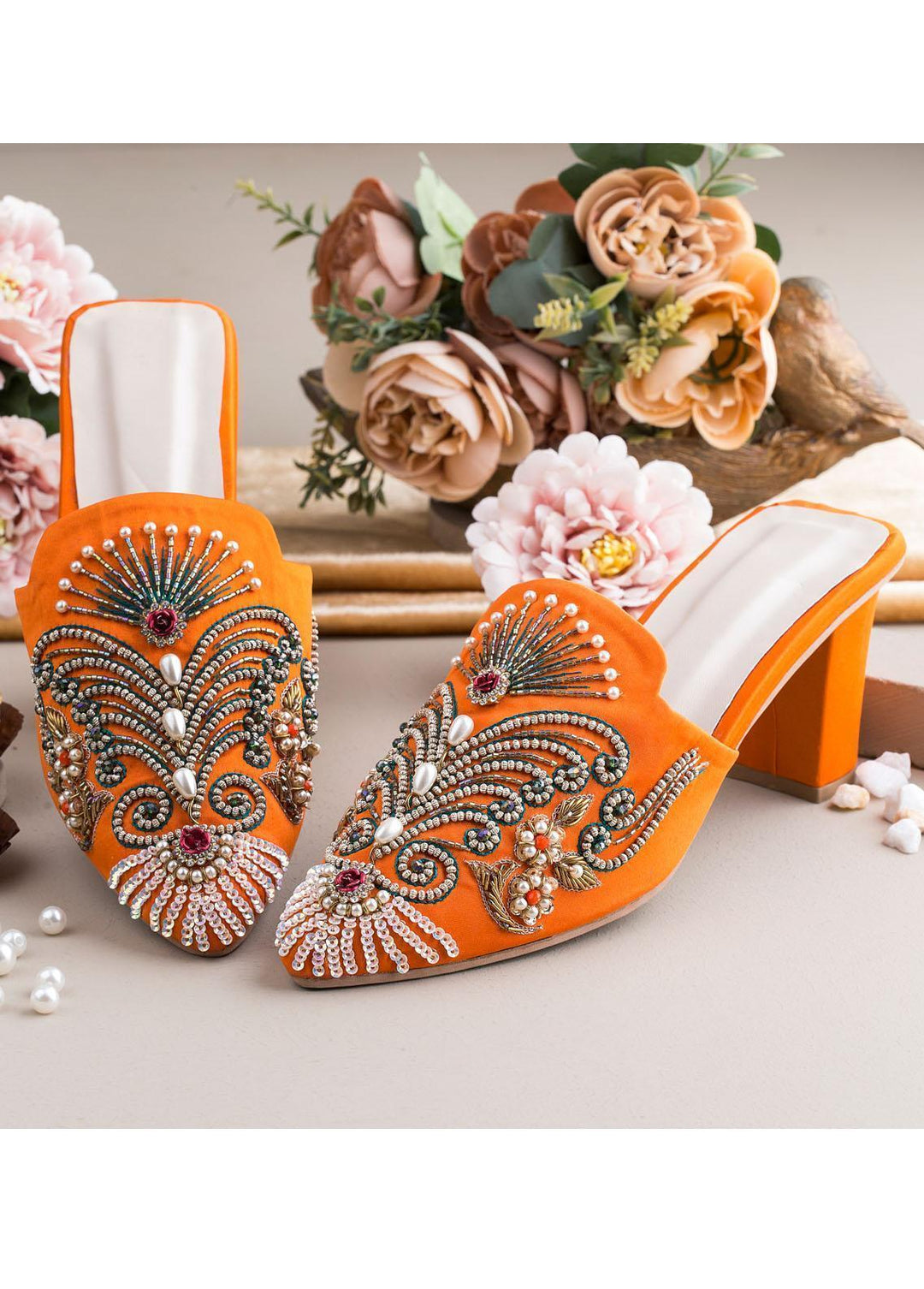 Zuruj Luxury Style Heel Mules ZJ23H HM-42-ORANGE
