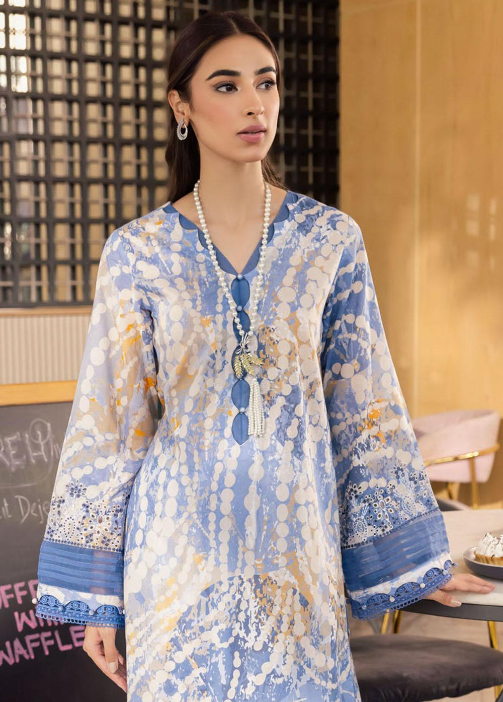 Embroidered Chikankari Printed Lawn Shirt.