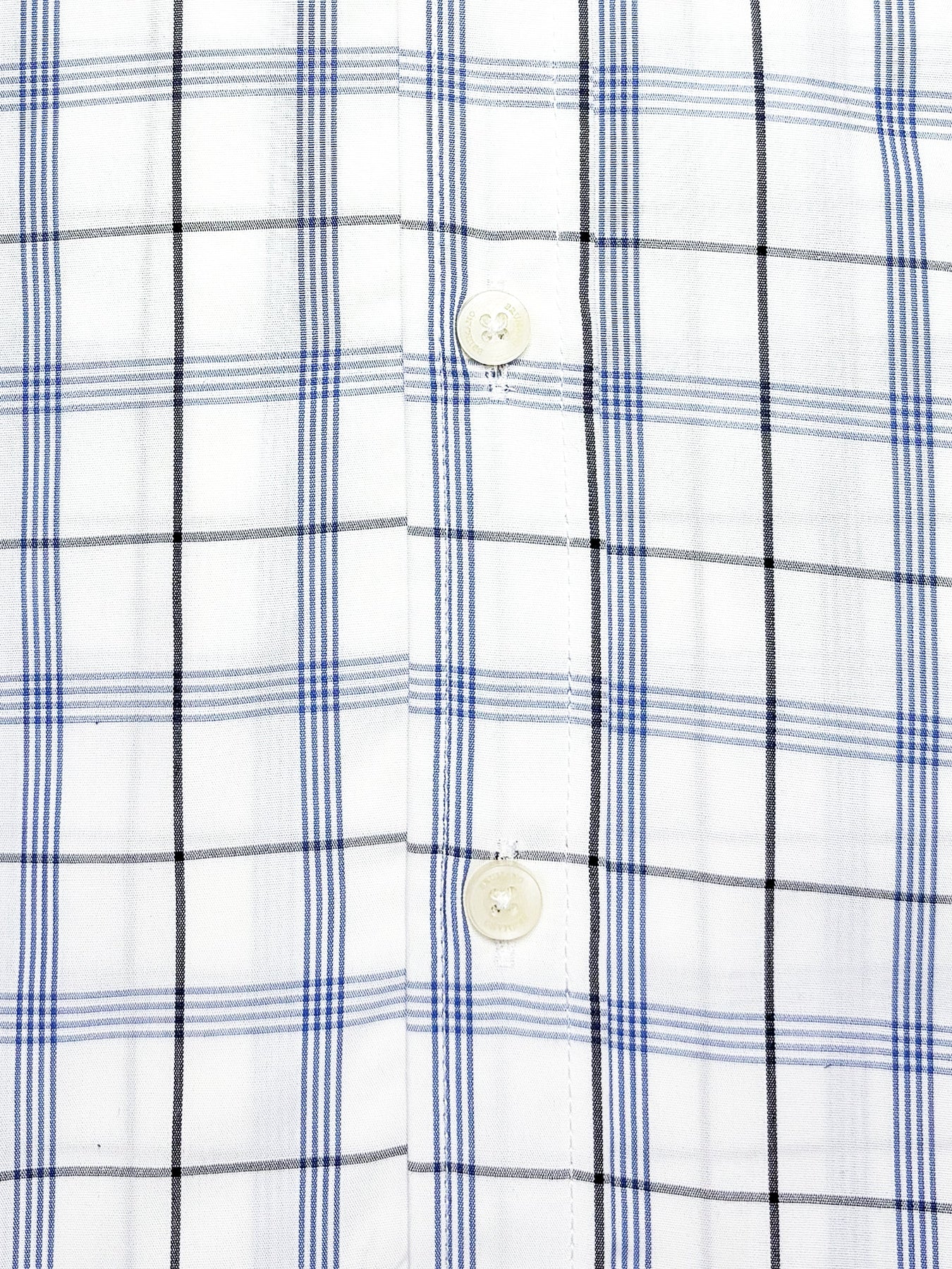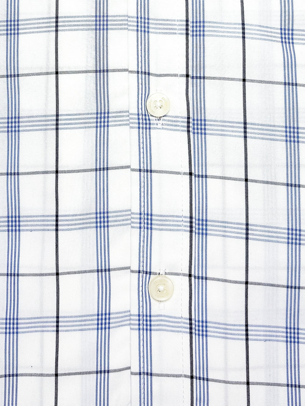 Elevate your formal wardrobe with this crisp white & blue shirt featuring a refined windowpane check pattern. Tailored for a sharp fit, it blends classic style with modern elegance—perfect for office wear or smart occasions.