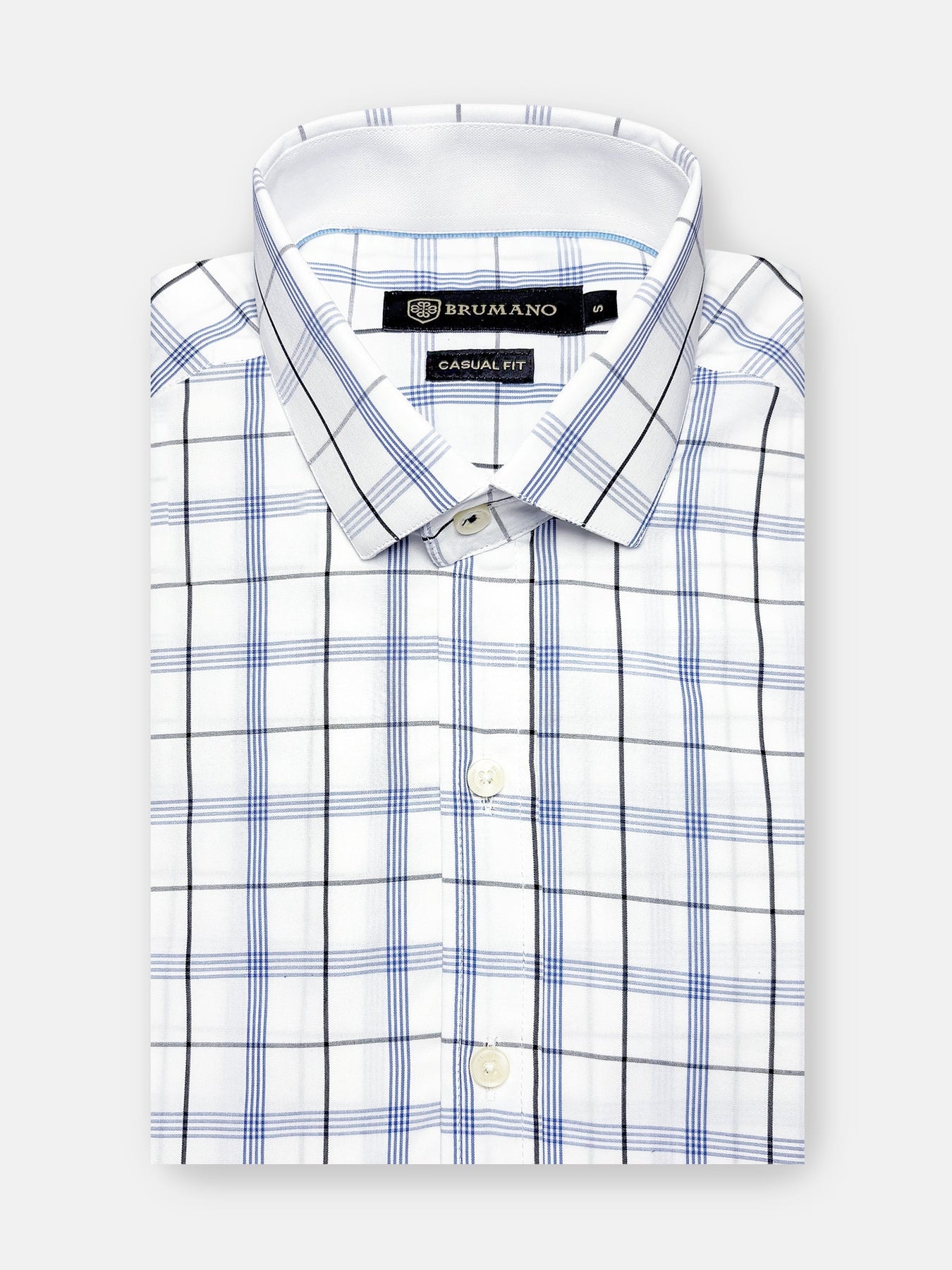 Brumano Ready To Wear Shirts Men 1 Piece Cotton White & Blue Windowpane Formal Checkered Shirt 0-31-025-4484 - Summer Collection
