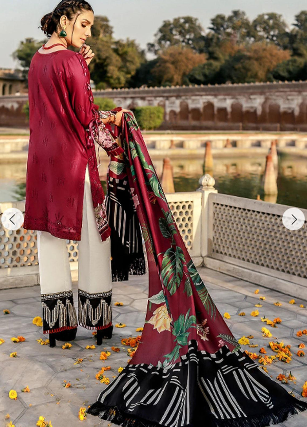 Elaf Embroidered Lawn Suits Unstitched 3 Piece EL21F 04B Charismatic Scarlett - Festive Collection