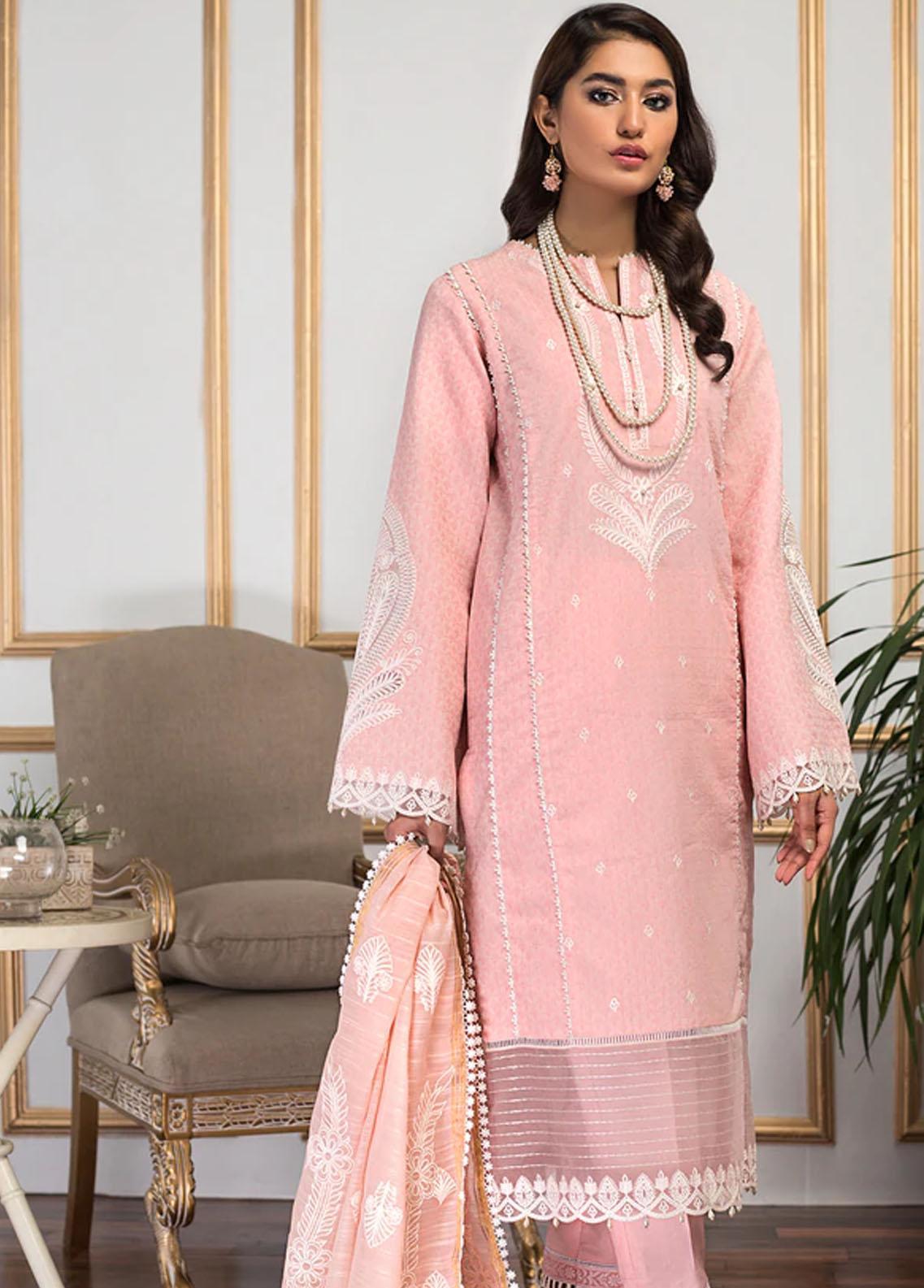 3 Piece Embroidered Lawn SuitEmbossed Printed Bumble Dupatta Embroidered Jacquard Front Plain Jacquard Back + Sleeve Embroidered Daman Border Embroidered Sleeve Motif Embroidered Sleeve Border Dyed Trouser Screen Printed Trouser Patti