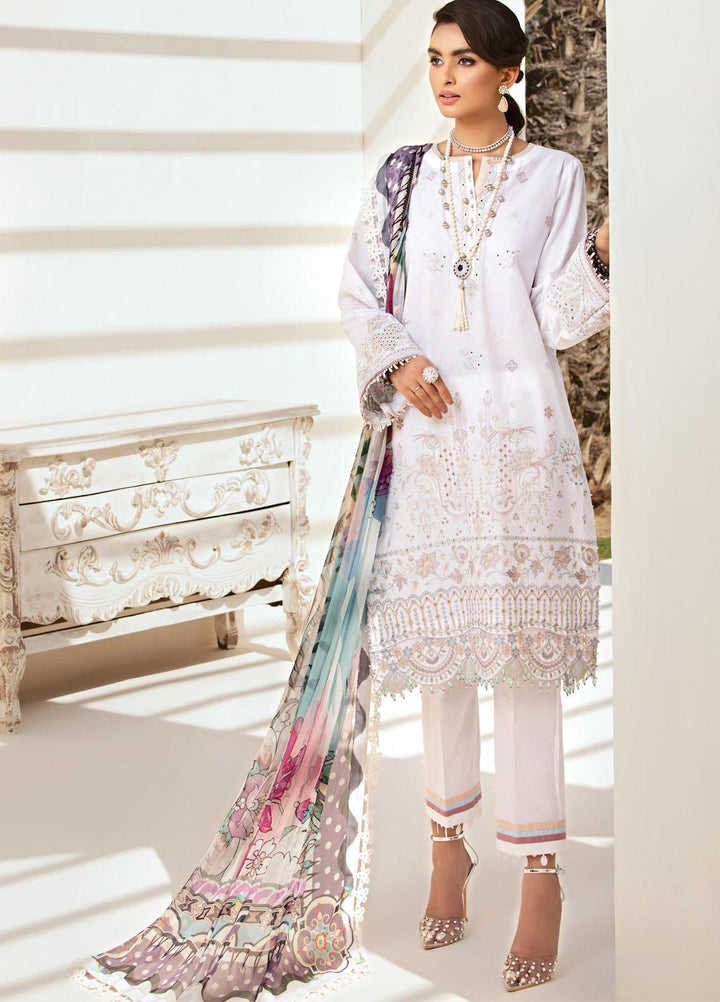 Farasha Embroidered Lawn Suits Unstitched 3 Piece FSH21-L2 02 Mystic Ivory - Festive Collection