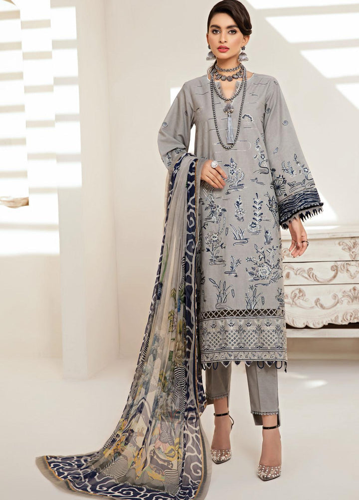 Farasha Embroidered Lawn Suits Unstitched 3 Piece FSH21-L2 10 Earl Grey - Festive Collection