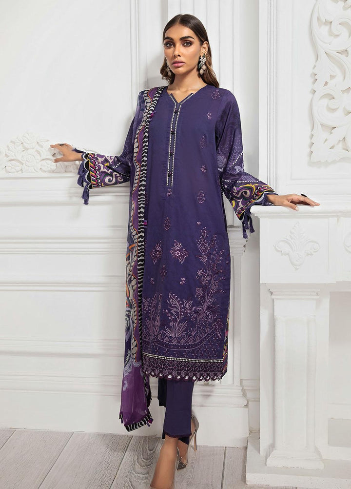 Farasha Embroidered Lawn Suits Unstitched 3 Piece FSH21-L3 09 Amethyst - Festive Collection