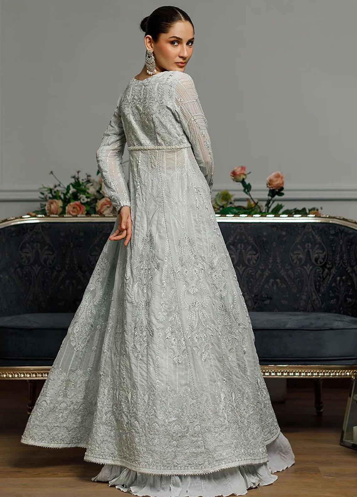This stunning light blue angrakha dress is an elegant chiffon number intricately embroidered with botanical designs The beauty of this piece comes alive through its elaborate threadwork shimmering zari and sequin embroidery which brings the ensemble to life The dress is tastefully enhanced by gota and lace work on its edges adding a touch of grandeur to the outfit The addition of a handcrafted belt around the waist and an attached beaded string amplifies the dress s allure Pair this dress with the complementary crushed chiffon skirt provided and you ll be an epitome of eastern and western fusion Here s what you ll get A beautifully embroidered chiffon dress with lining extending to half the body length Complementary crushed chiffon skirt complete with lining and a hidden cancan This is all about fusion and elegance packed in one ensemble Embrace the enchanting light blue shade and watch how the subtle design elements come together for a visual symphony